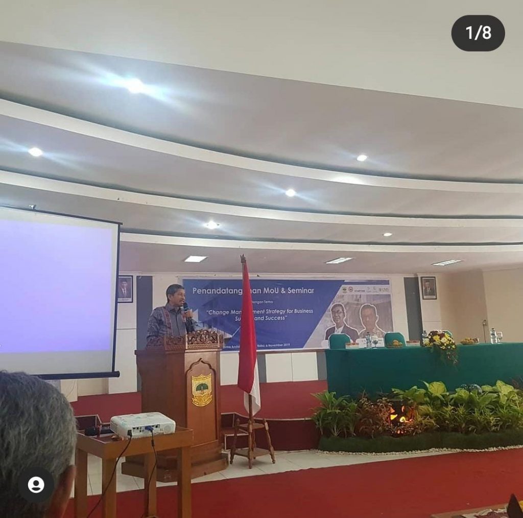 Penandatanganan MoU dan Seminar Nasional dengan tema “Change Management Strategy for Business Survive and Success”. Diselenggarakan oleh Prodi S1 Manajemen, FEB Unidha.